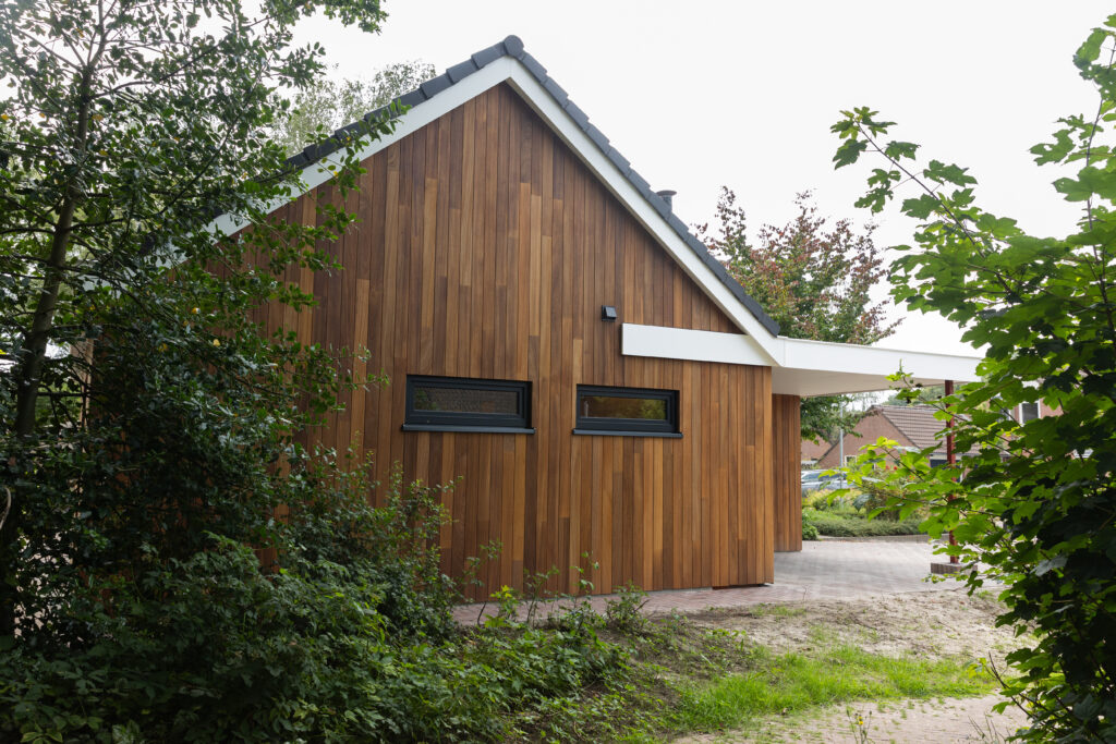 Daarnaast biedt de natuur zelf een aantal houtsoorten die van oorsprong al zeer duurzaam zijn en daarom geen extra behandeling nodig hebben. Deze natuurlijke krachtpatsers benutten we volop, mits ook zij met de juiste certificering geleverd kunnen worden. We kozen de beste varianten met een uitzonderlijke levensduur en uitstraling: Louro Preto, Jatoba, Cumaru, Padouk en Ipe. Stuk voor stuk houtsoorten met karakter, topkwaliteit en een verhaal dat je gevel verrijkt.
