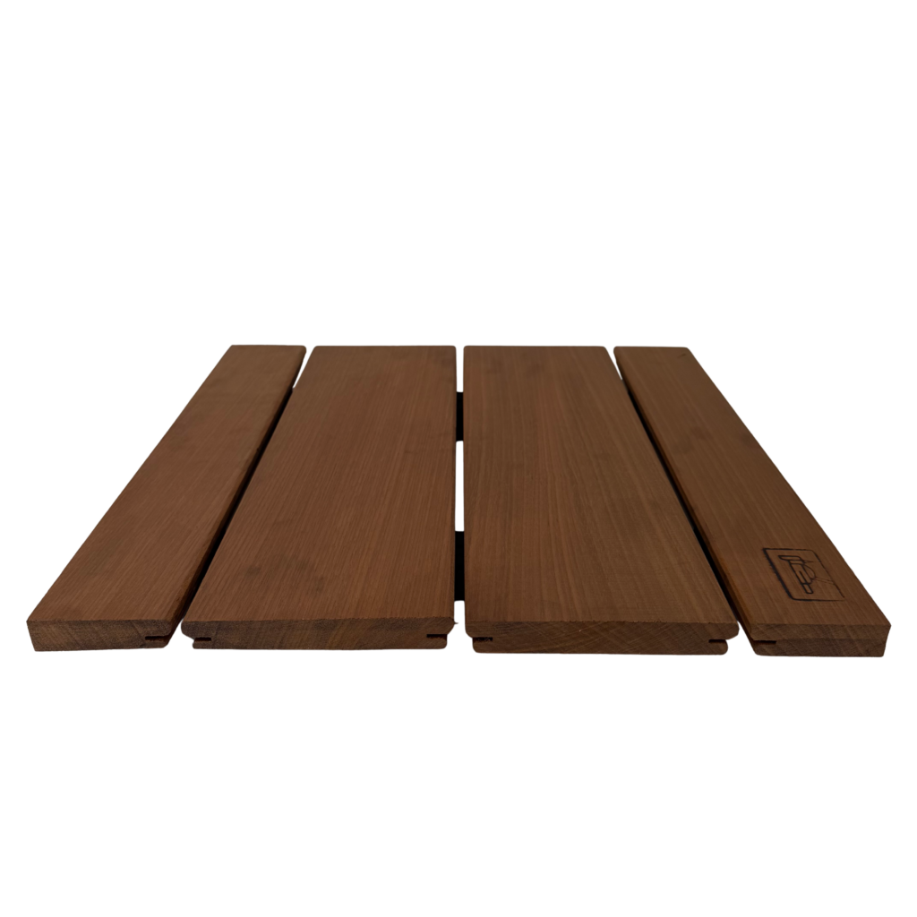 Tauari biedt een elegante open gevel met een moderne, luchtige uitstraling. De bevestiging blijft volledig uit het zicht dankzij een slim clipsysteem, waardoor het hout zijn natuurlijke schoonheid behoudt. Beschikbaar in vaste en variabele breedtes creëer je een ritmisch en speels lijnenspel. Een stijlvolle keuze voor wie durft te laten zien, zonder rommelig oogt.
